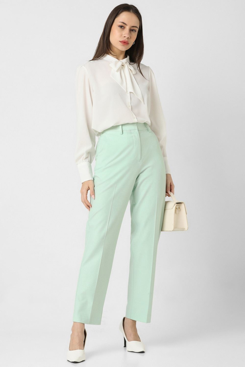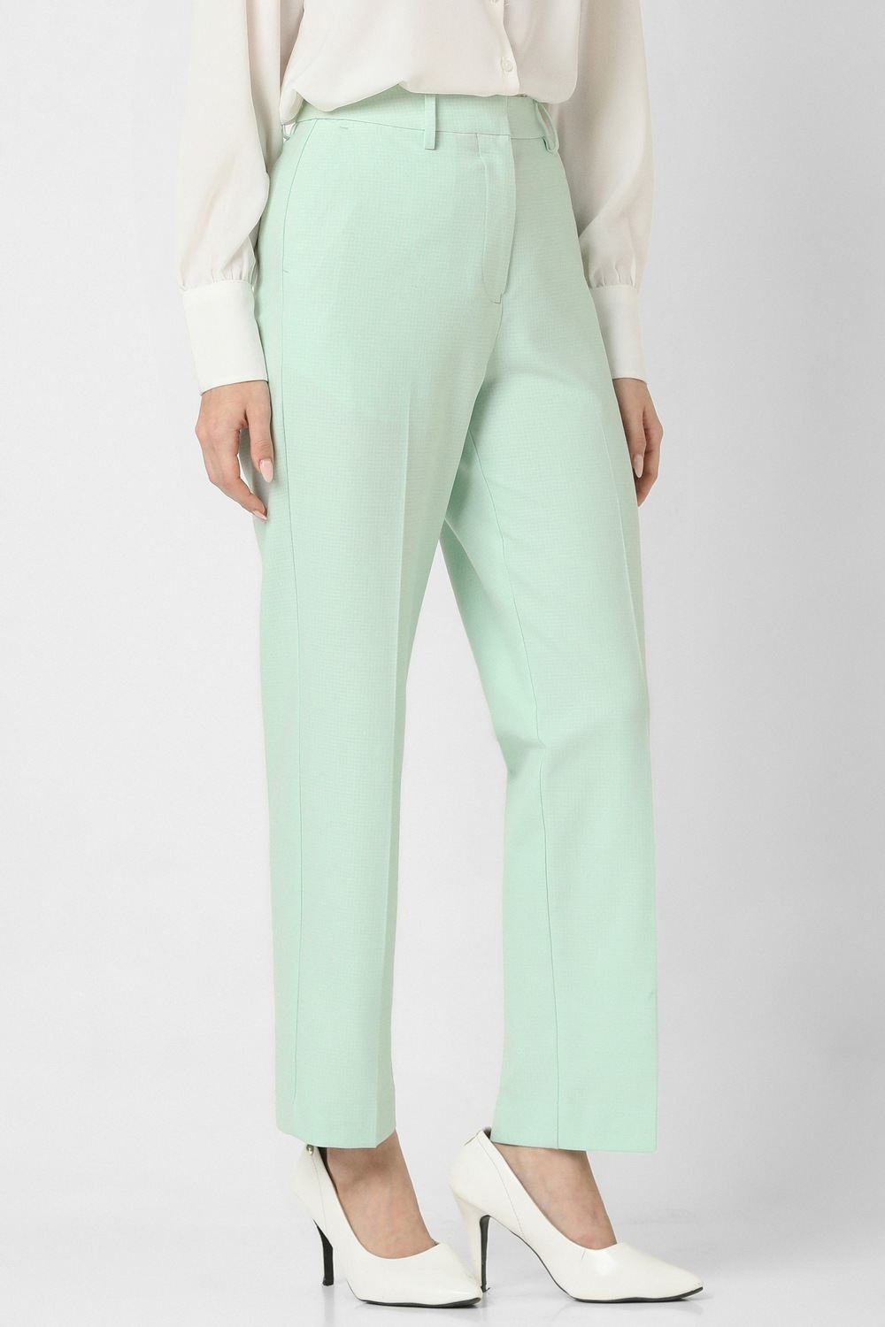 Elevate your formal attire with these Van Heusen trousers, crafted from a premium blend of polyester, viscose, and spandex. Designed for a regular fit, they offer both comfort and sophistication. The solid green color adds a touch of elegance, making them a versatile choice for various formal occasions. With a flat front, these trousers are perfect for achieving a polished look that seamlessly transitions from day to night. Experience style and ease with every wear.