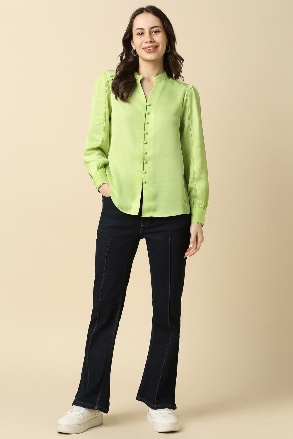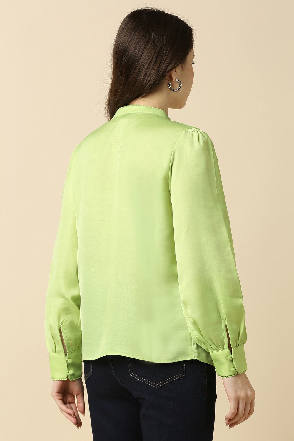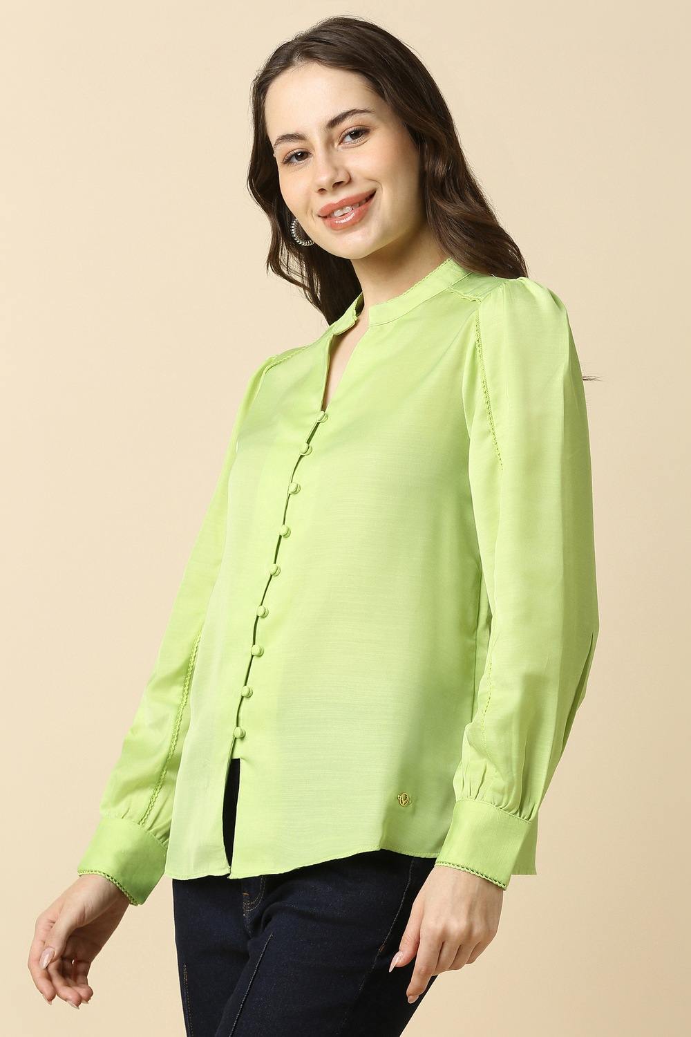 Discover effortless style with the Allen Solly solid green shirt, designed specifically for women. Crafted from high-quality polyester, this regular fit shirt features a chic slit neckline and long sleeves, making it perfect for casual outings. The timeless green hue enhances your wardrobe versatility, ensuring you stand out with sophistication. Elevate your everyday look with this essential piece, embodying both comfort and elegance effortlessly.