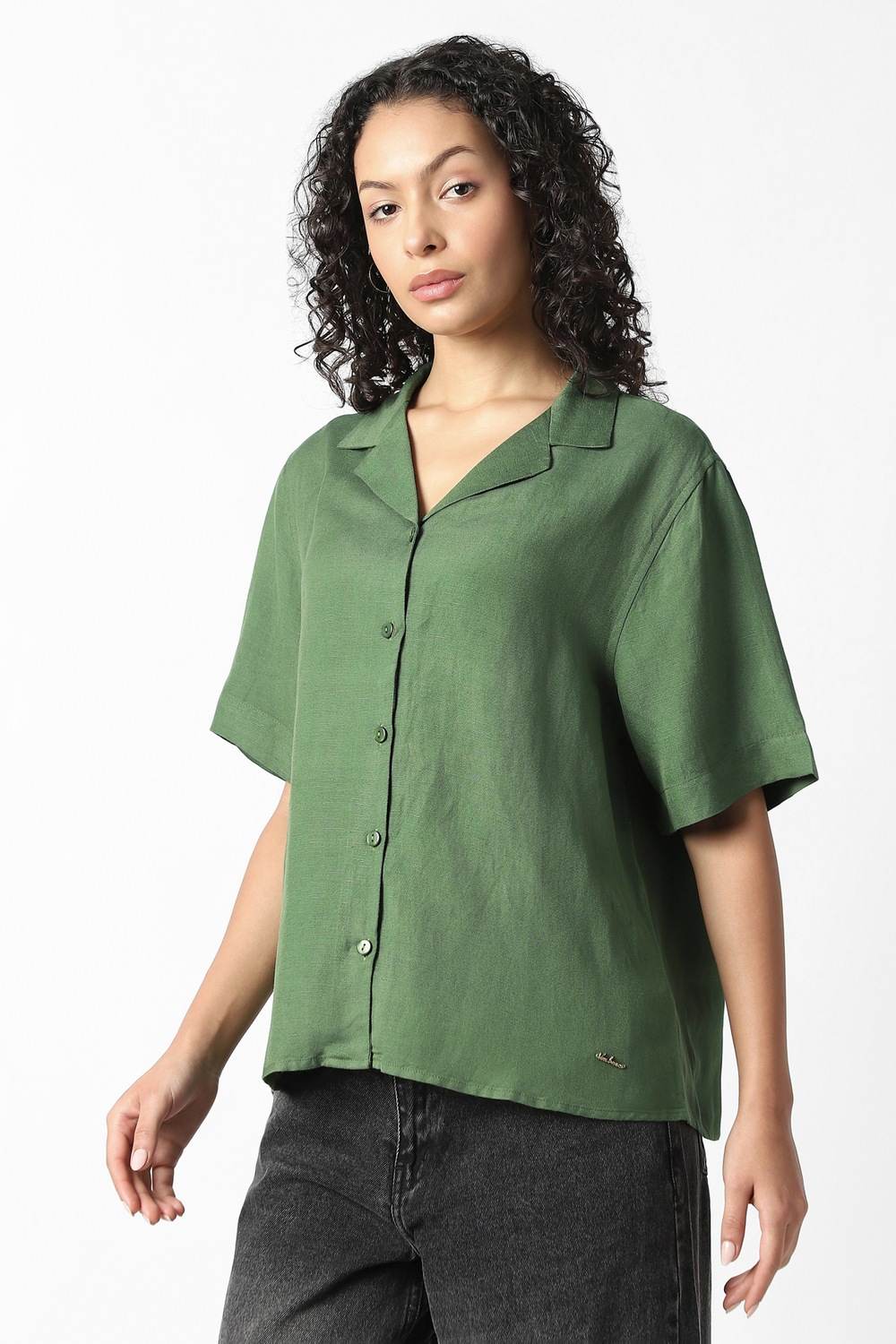Experience unparalleled sophistication with this women's shirt by Van Heusen, tailored from a luxurious blend of viscose and linen. The solid green hue evokes a sense of confidence, making it an ideal choice for formal occasions. Enjoy the breathable fabric that transitions seamlessly from the boardroom to evening events. Its elegant design complements your refined style, promising to be a staple in your collection, ensuring you look effortlessly polished wherever you go.