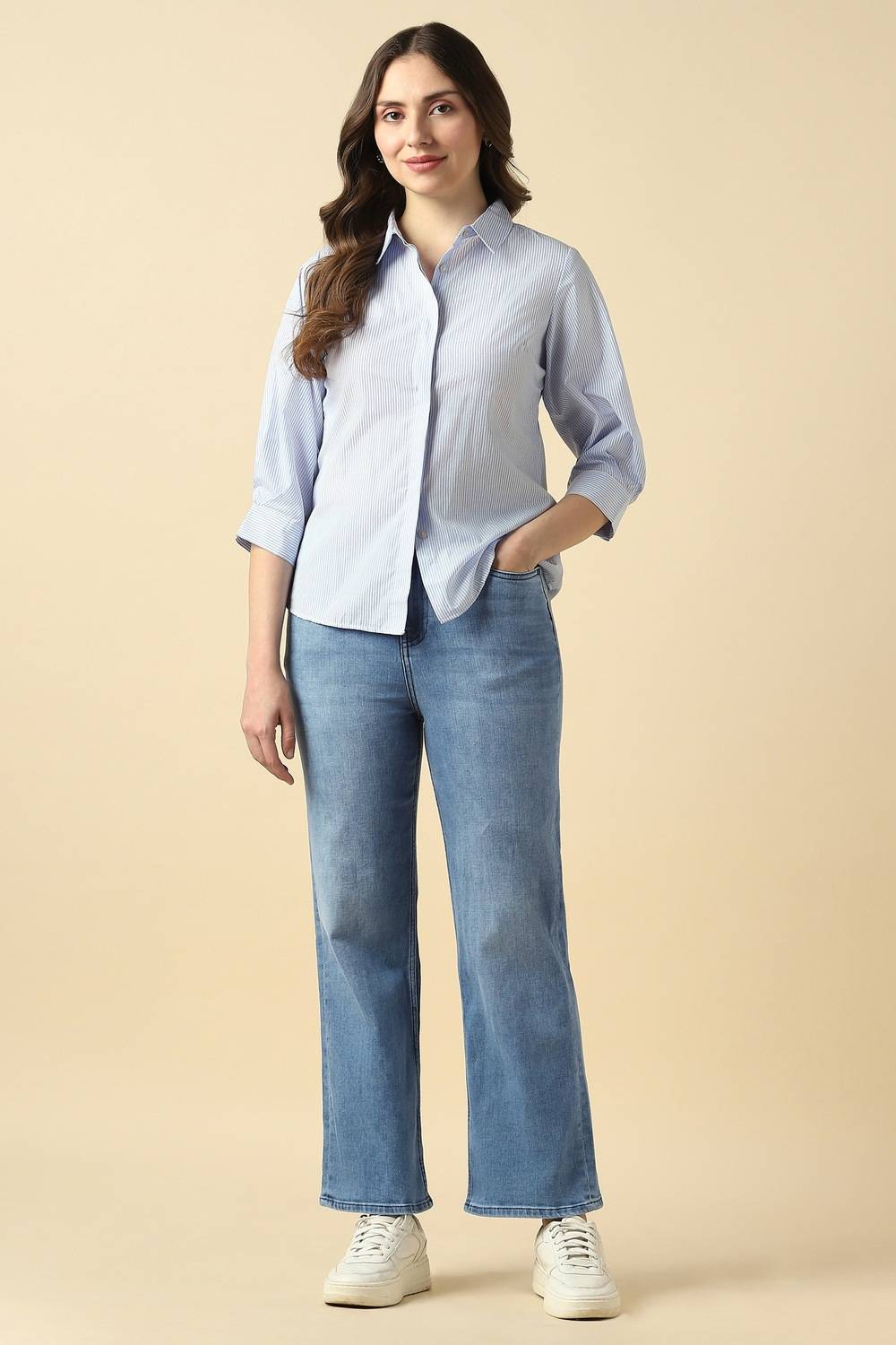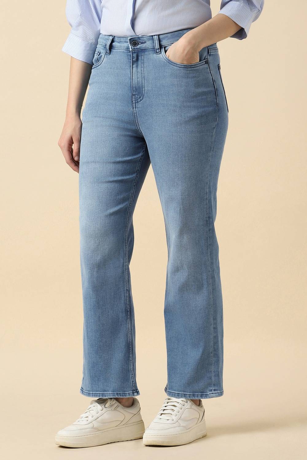 Infuse your casual wardrobe with these light blue jeans from Allen Solly, exquisitely tailored from cotton for breathable comfort. The solid pattern delivers an effortlessly chic aesthetic, making them a stylish choice for your everyday outings. With their lightweight wash, these jeans are perfect for warm days, ensuring you feel relaxed yet fashionable. Pair them with your favorite tops to embrace an easygoing elegance that resonates with your dynamic lifestyle.
