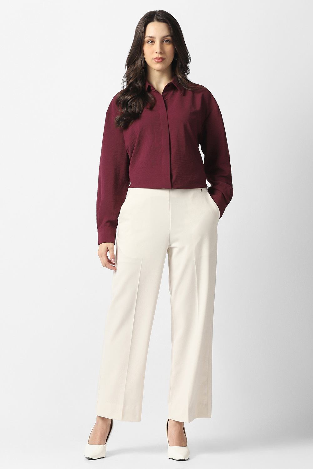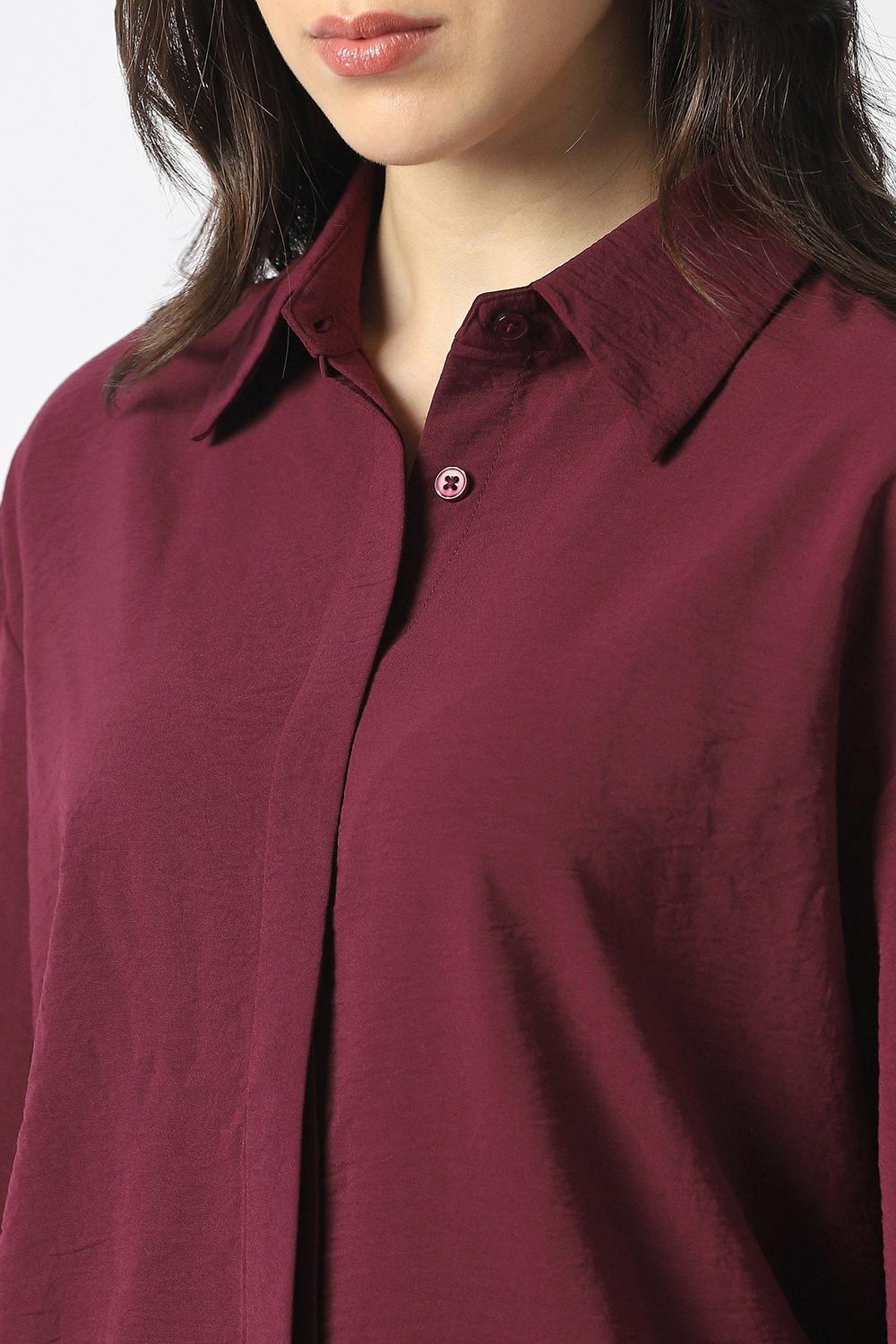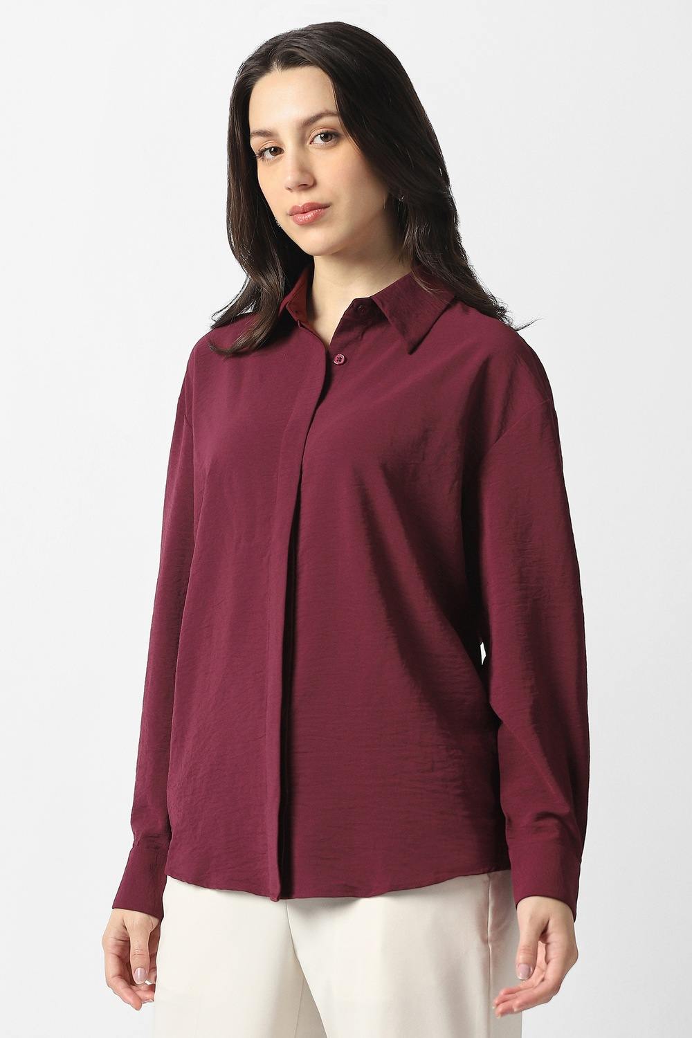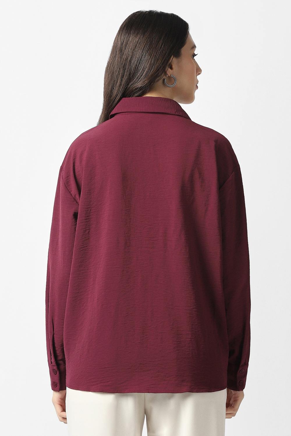 Embrace effortless style with this Van Heusen women's shirt in a rich maroon hue. Crafted from a luxe blend of lyocell and linen, it promises ultimate comfort for casual occasions. The solid pattern adds versatility, allowing for easy pairing with your favorite bottoms. Experience the perfect fusion of refinement and ease with this must-have addition to your wardrobe, ideal for both relaxed days and chic outings.