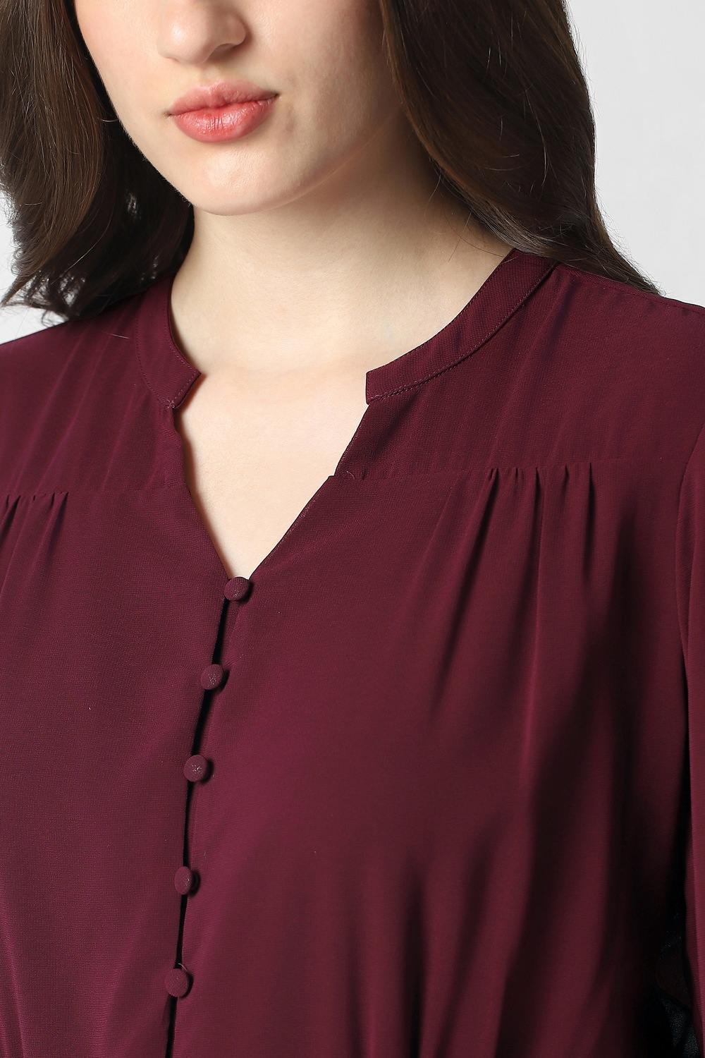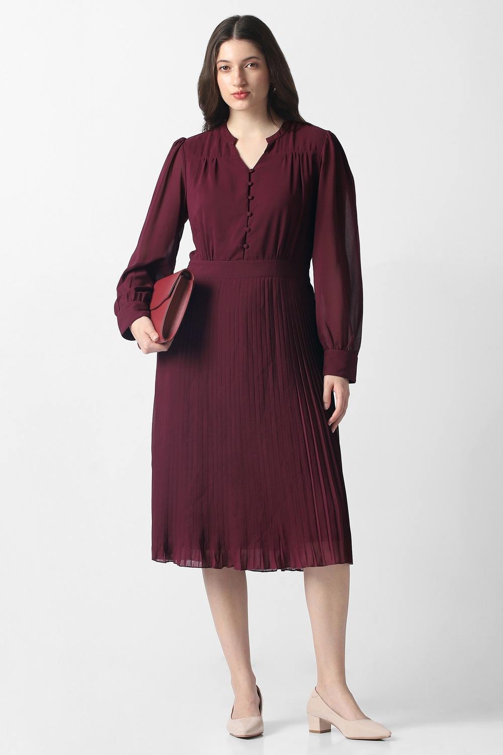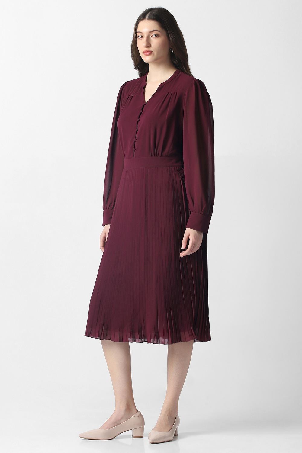 Ignite your evening elegance in this stunning maroon dress by Van Heusen. The alluring slit neckline enhances its refined aesthetic, while the solid pattern exudes understated luxury, perfect for unforgettable parties. Crafted from premium polyester, it offers a graceful drape that flatters your silhouette and ensures ease of movement. This dress effortlessly transitions from cocktail to gala, making it an essential addition to your sophisticated collection. Step into confident allure with every wear.