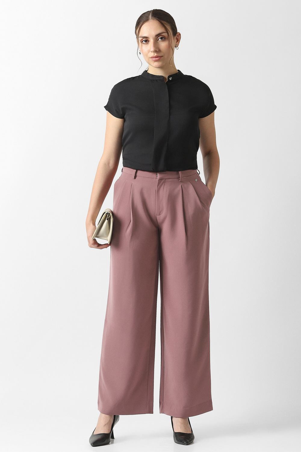 Exuding grace and sophistication, these pink trousers from Van Heusen are the epitome of refined style for formal occasions. Meticulously constructed from luxurious polyester, they offer an exquisite drape that enhances your silhouette. Their solid pattern brings a classic yet modern vibe, easily pairing with elegant blouses or tailored jackets. Experience unparalleled freedom of movement while making a bold statement that showcases your distinctive taste and confidence in every setting.