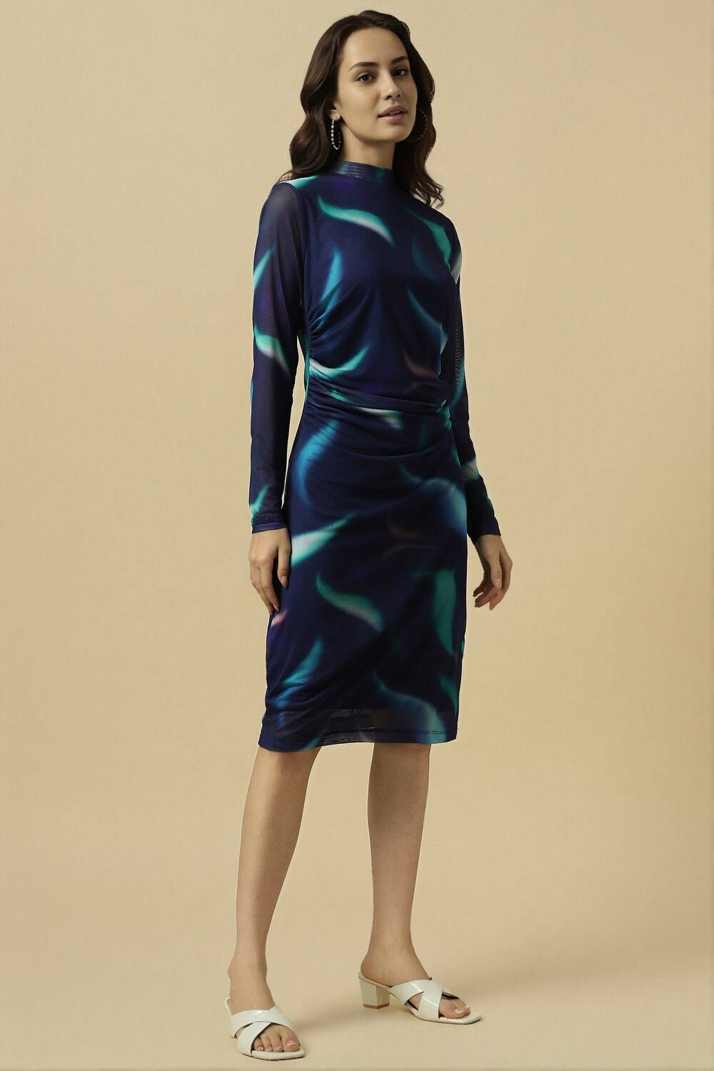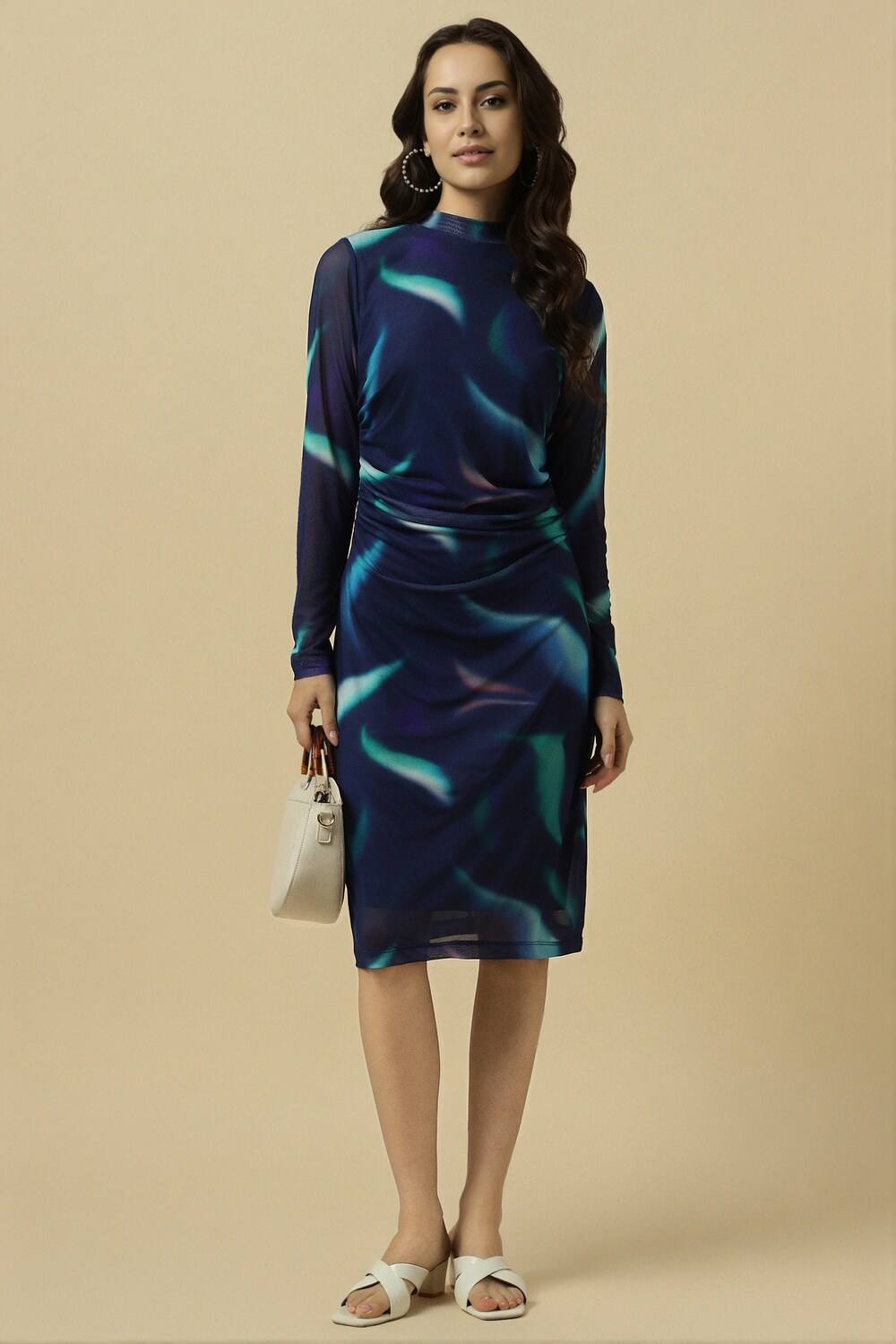 This Allen Solly women`s casual dress in navy features a stylish printed pattern, exuding effortless elegance. Designed with a regular fit and a flattering round neckline, it ensures comfort without compromising on style. The long sleeves add a touch of sophistication, making it perfect for both daytime outings and evening gatherings. Embrace chic versatility with this wardrobe essential that beautifully balances casual ease and contemporary flair.