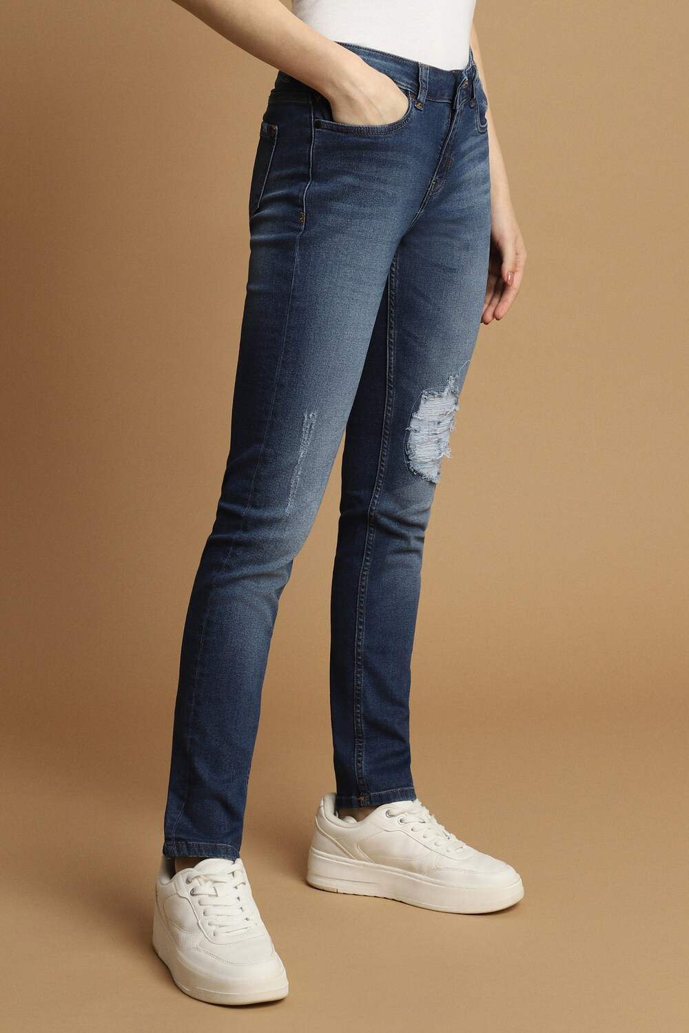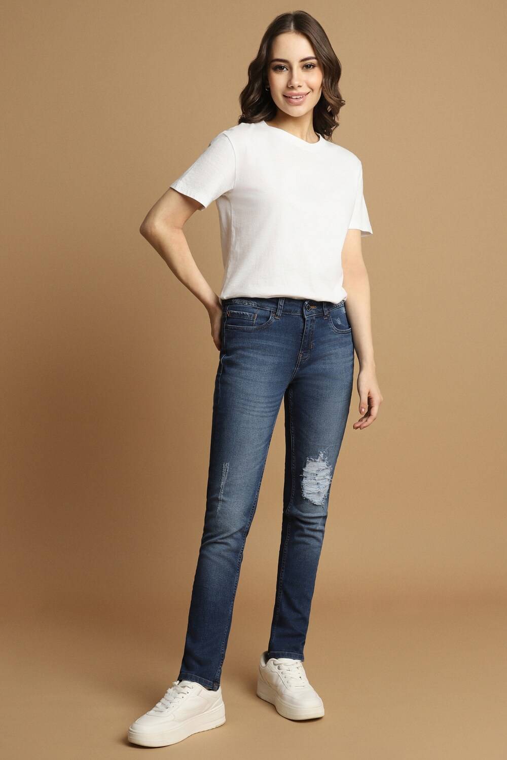 Experience effortless style with the Allen Solly women`s jeans in a classic navy hue. Designed with a slim fit, these jeans seamlessly blend comfort and contemporary fashion, making them perfect for casual outings. Crafted from a premium cotton blend featuring polyester and elastane, they provide flexibility and structure. Pair them with your favorite tops for a chic, laid-back look that speaks elegance and versatility. Elevate your wardrobe today.