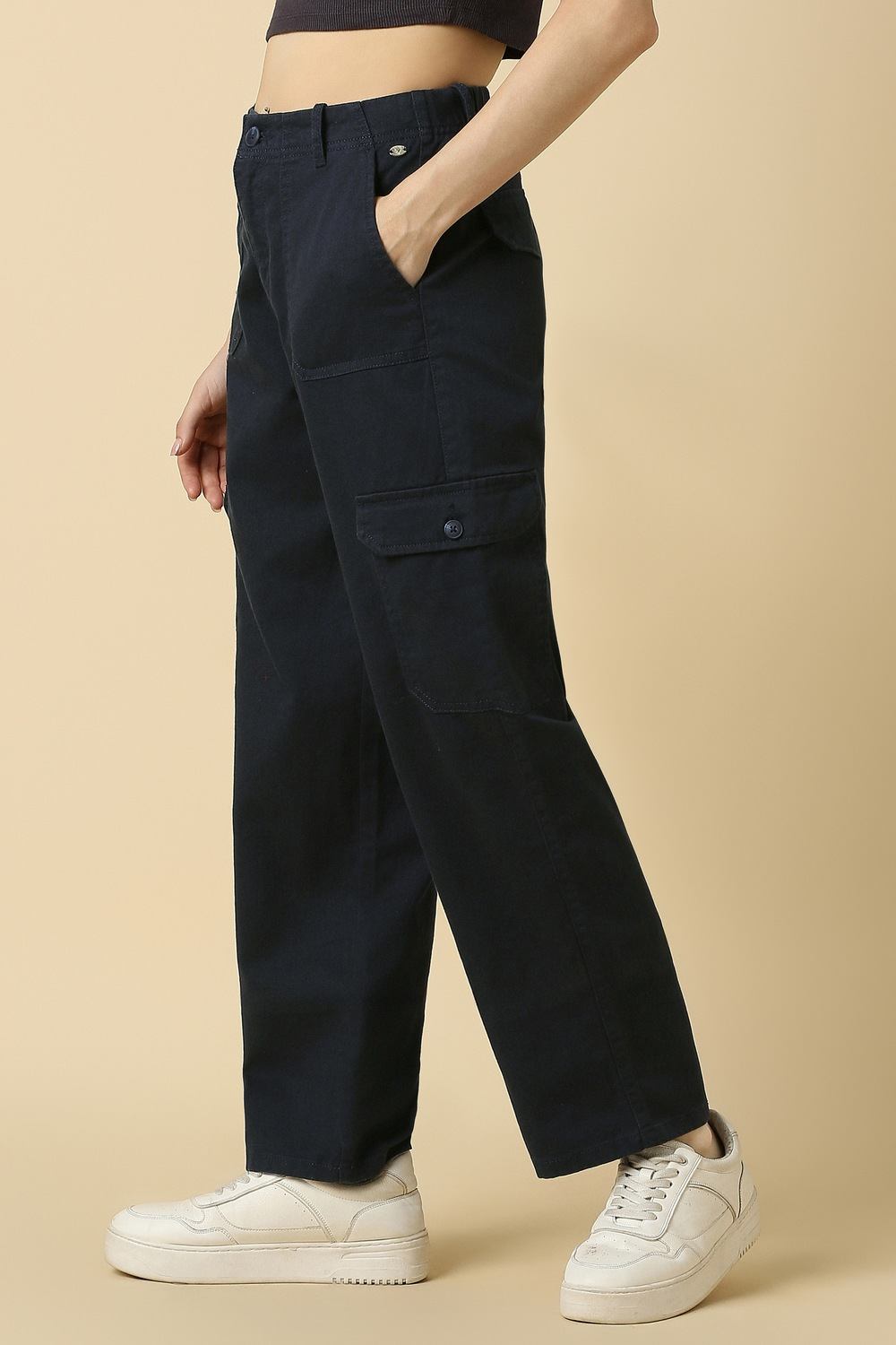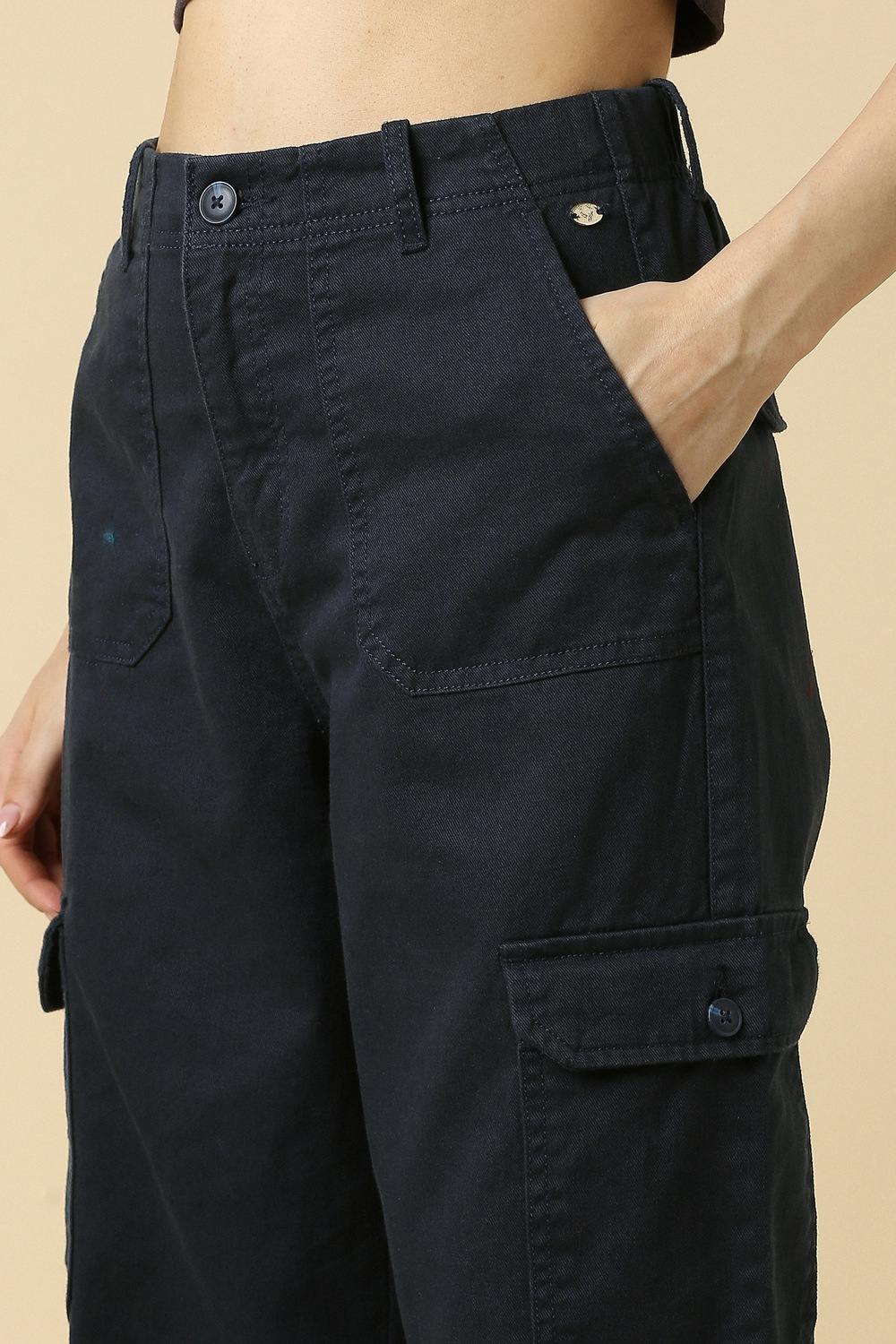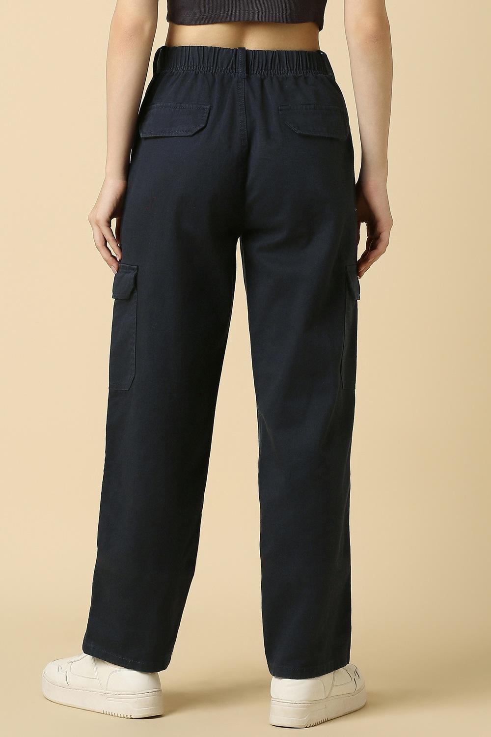 The Allen Solly women's trousers in a classic navy hue are the perfect blend of comfort and style. Crafted from breathable cotton, they offer a relaxed fit that's ideal for casual outings. The solid pattern enhances versatility, making these trousers a staple for any wardrobe. Embrace effortless elegance and elevate your look with this timeless piece that promises both sophistication and ease. Perfect for a day out or a casual gathering.
