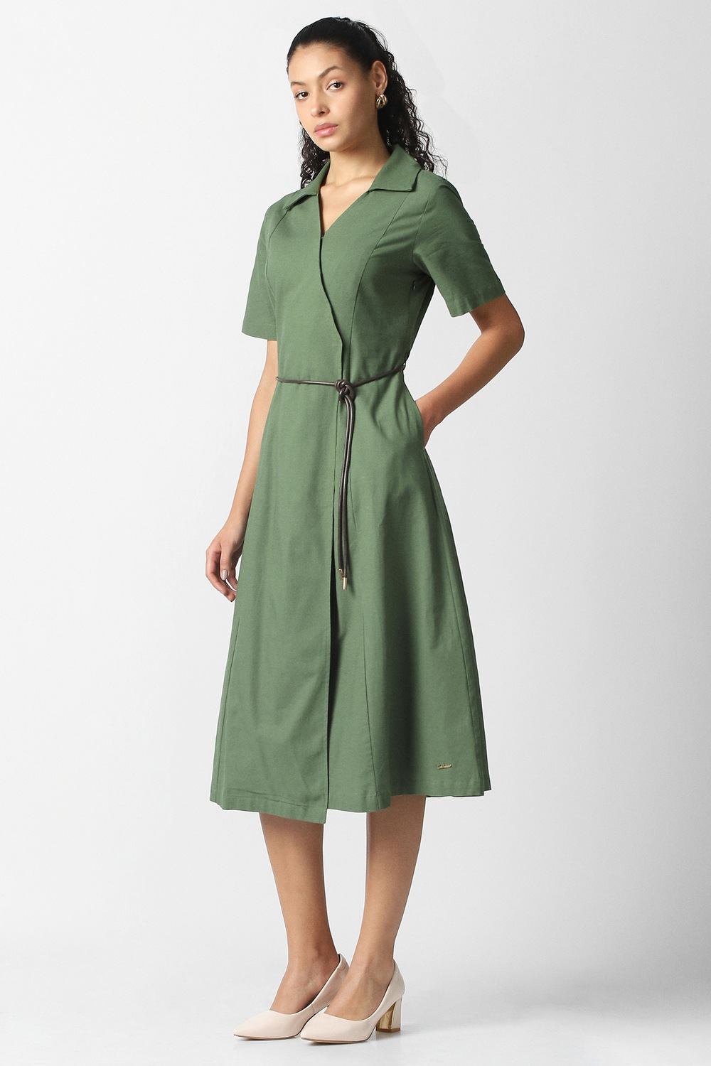 Introducing an exquisite blend of cotton and linen, this olive dress from Van Heusen embodies refined sophistication, perfect for formal occasions. The solid pattern offers a timeless appeal, while its breathability ensures comfortable all-day wear. Emphasizing your effortless grace, this meticulously constructed piece effortlessly transitions from office meetings to evening events. Explore the endless styling possibilities, allowing your personality to shine through in every setting with this essential addition to your wardrobe.