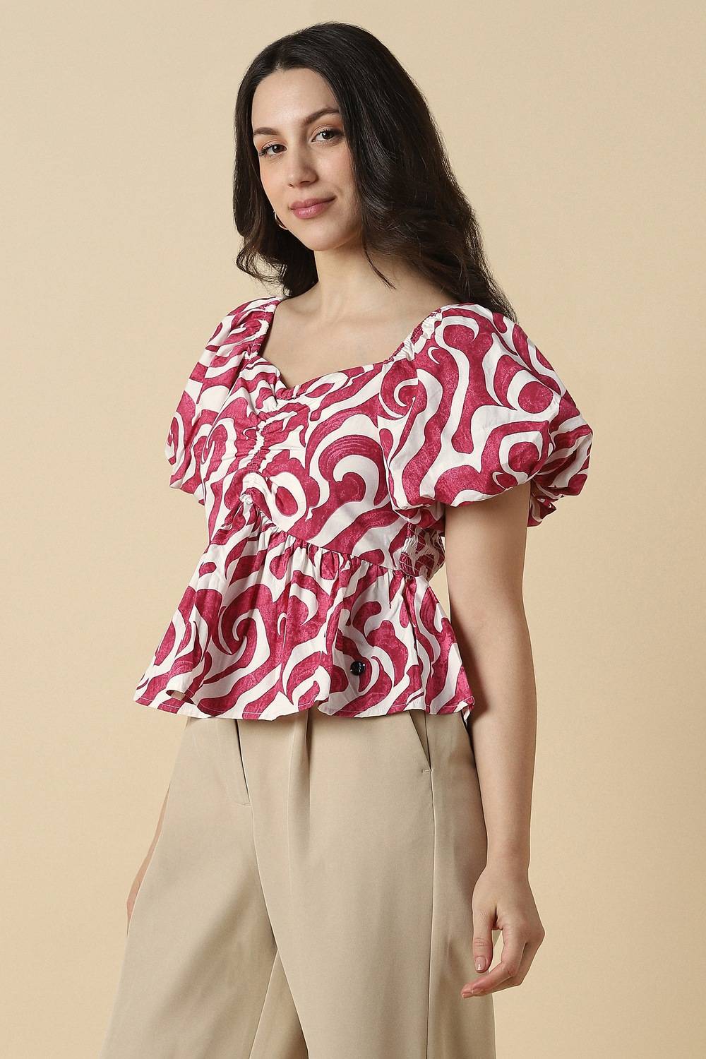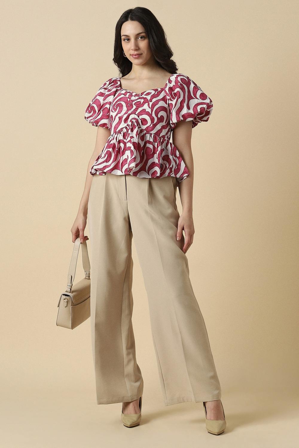 Discover the effortless charm of this pink printed top by Allen Solly, designed for the modern woman. Crafted from a soft blend of viscose and nylon, it ensures all-day comfort while the stylized neckline adds a unique touch. Perfect for casual outings, this versatile piece pairs seamlessly with your favorite jeans or skirts. Elevate your wardrobe with this standout top that combines style and comfort effortlessly. Embrace elegance today!