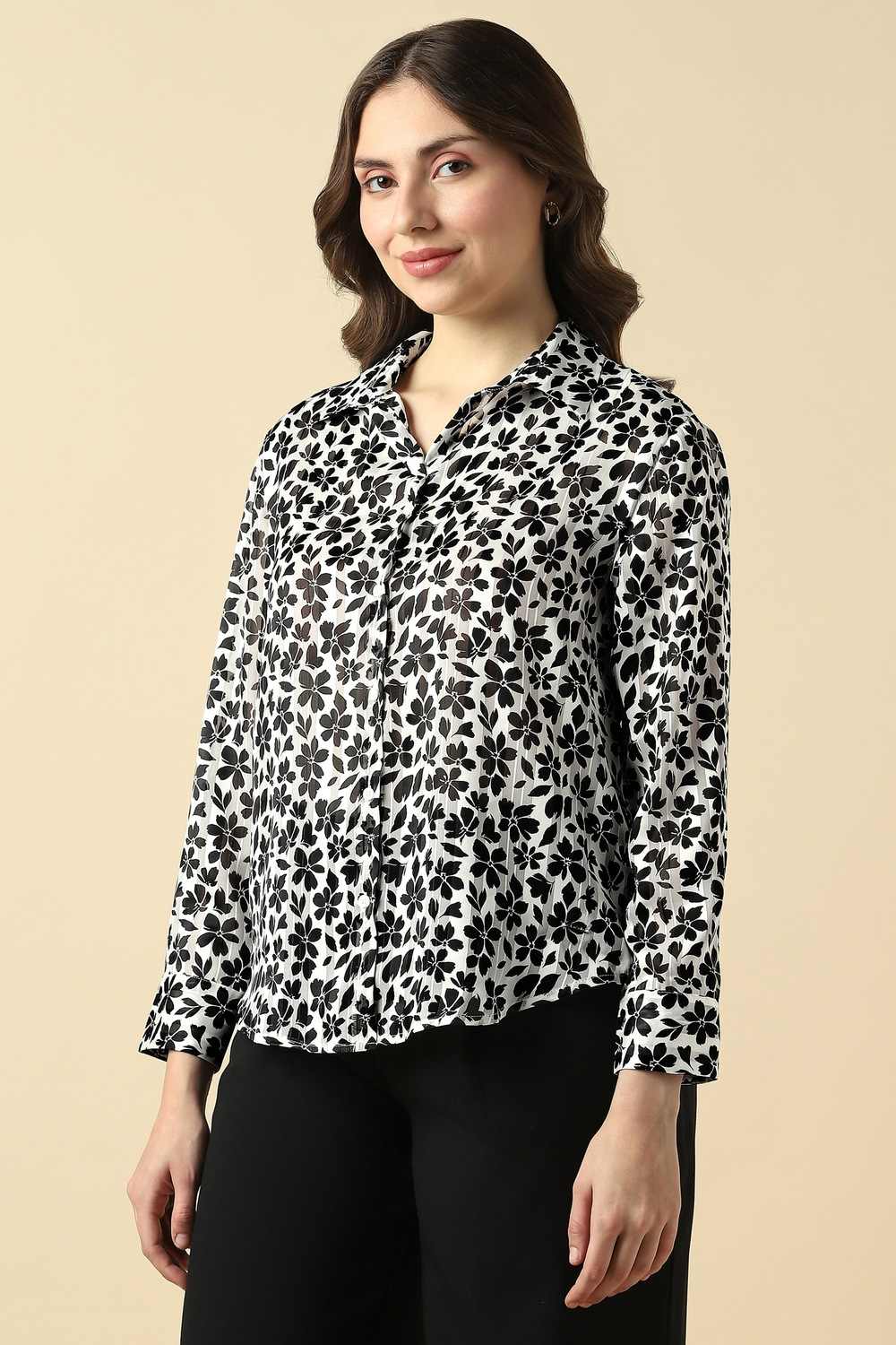 Radiating sophistication, this white stylized top from Allen Solly is designed for the modern woman seeking elegance in formal occasions. Crafted from lightweight polyester, it promises a breathable experience while enhancing your confidence with its unique print that transitions seamlessly from office to evening events. Illuminate your presence with this stunning piece that embodies style and grace, refreshing your wardrobe with a touch of contemporary flair. Perfect for making memorable impressions.