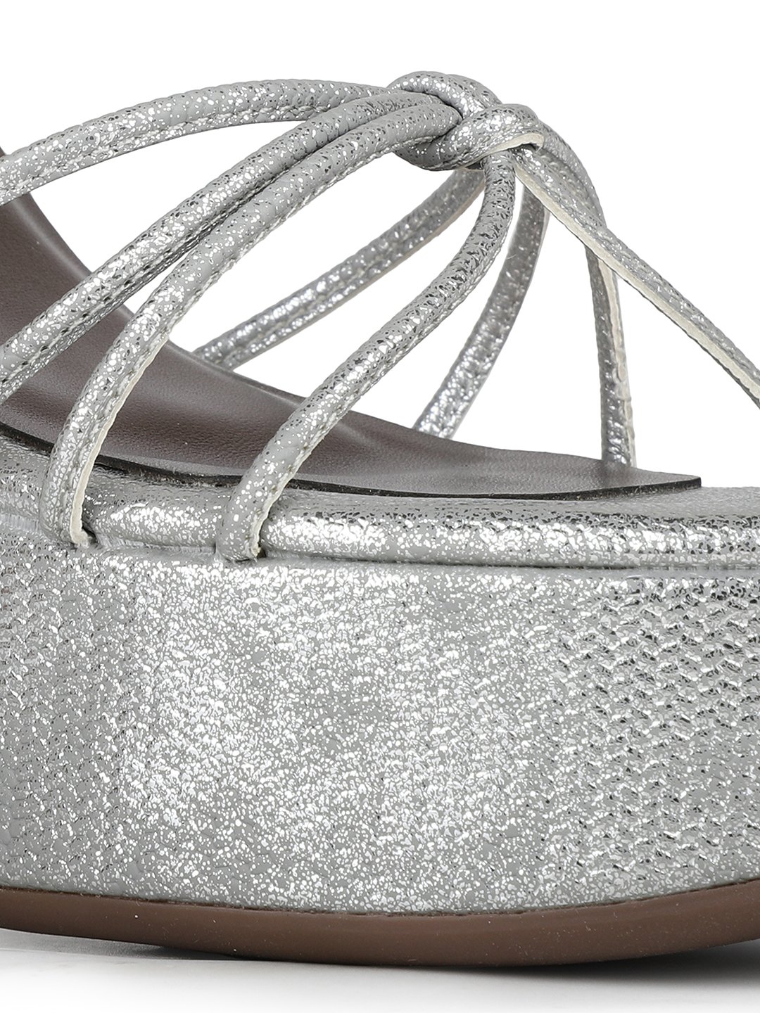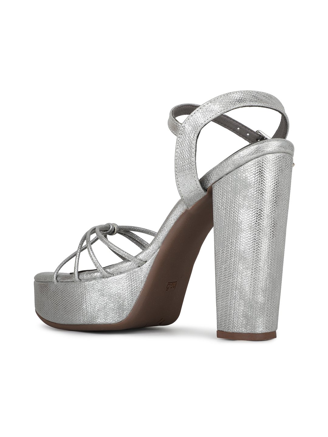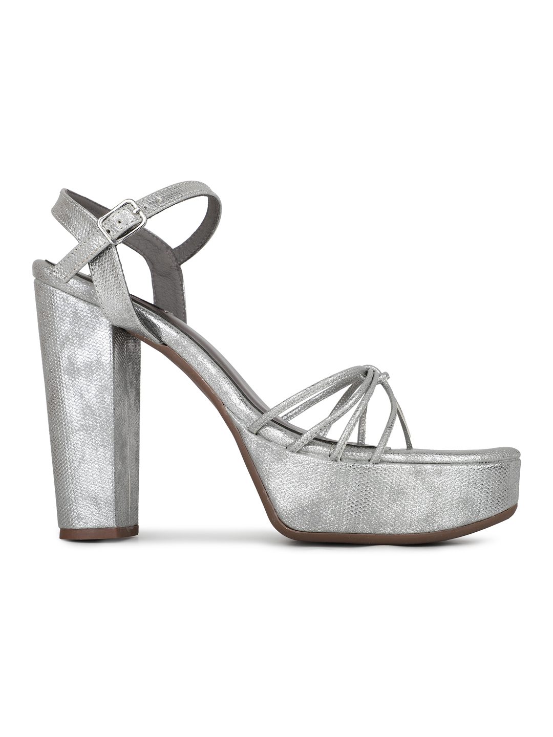 Womens Silver Party Wear Striped Round Toe Block Heel Sandals