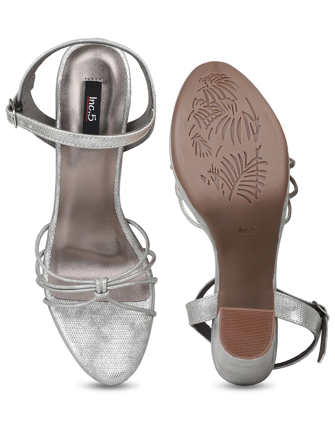 Home/Heel Sandals/Inc.5/womens silver party wear striped round toe block heel sandals