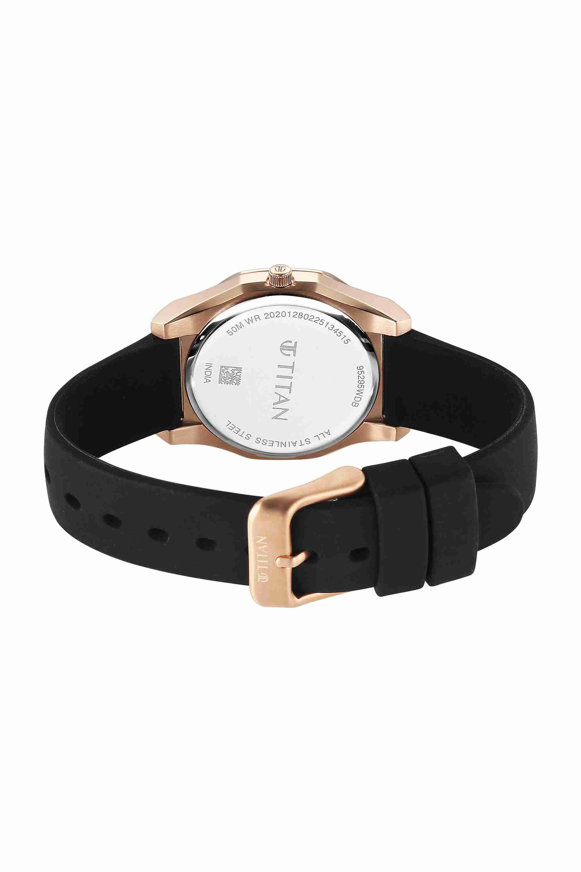 Home/Analog Watches/Titan/workday wonders silicon 26.3x6.85x26.3 mm black dial silicone analogue watch for women - 95295wp01