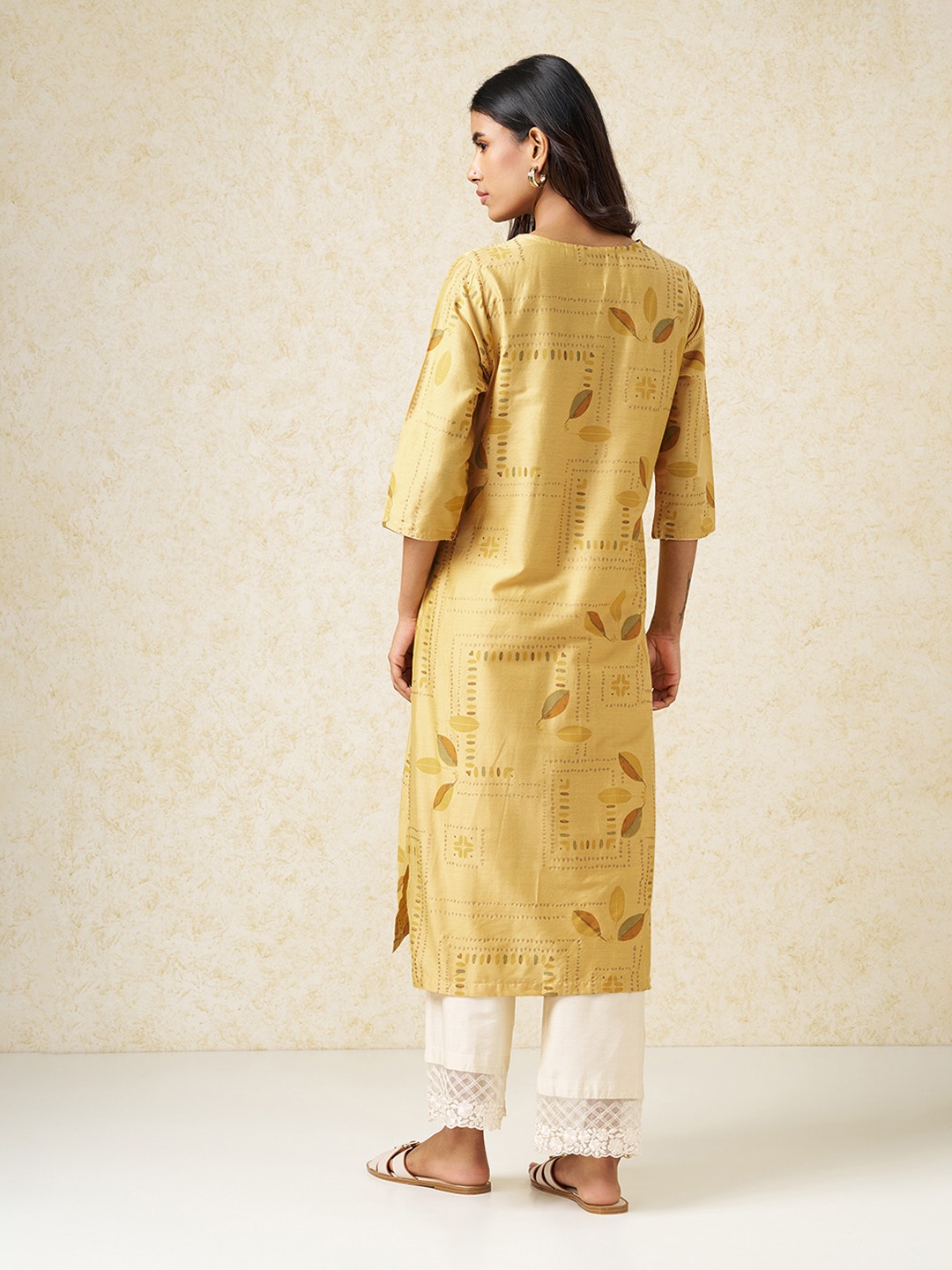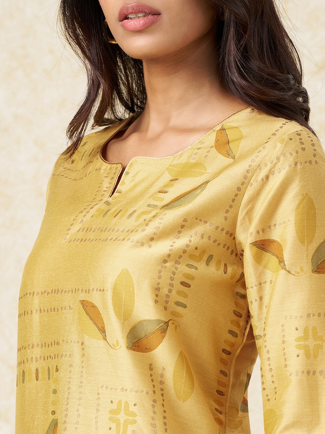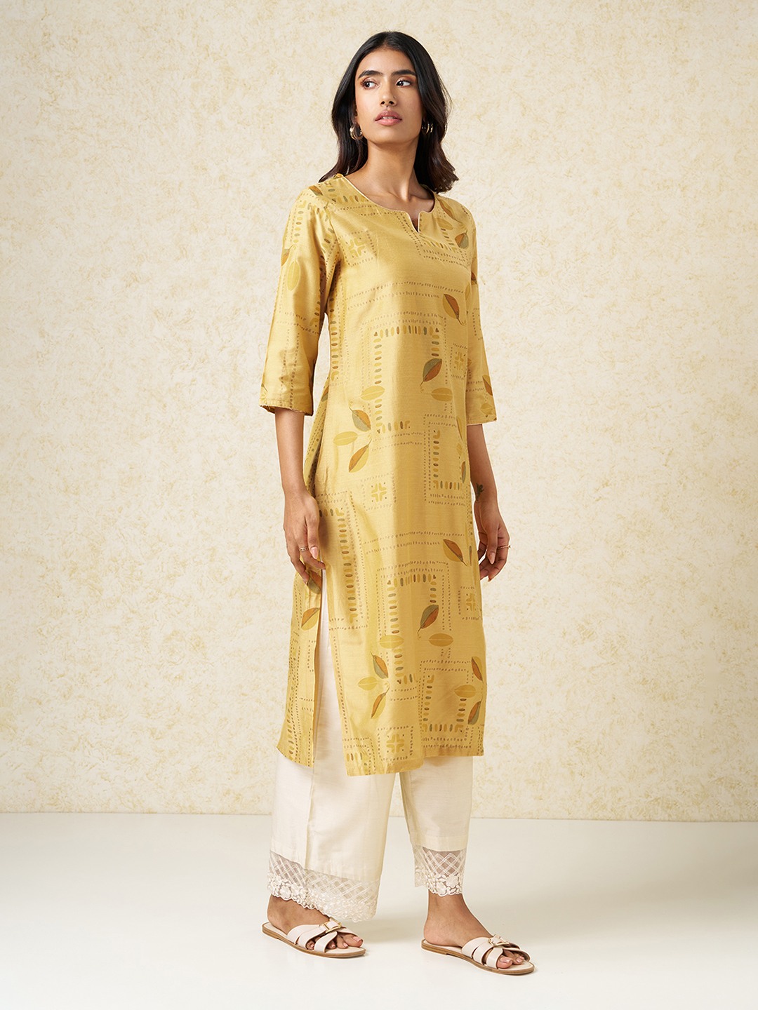 Home/Kurtas/RANGMANCH by Pantaloons/yellow leaf print celebration kurta
